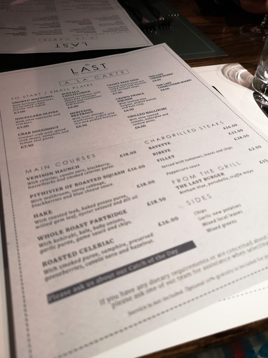 The Last Wine Bar and Restaurant, located at 70-76 St Georges St, Norwich NR3 1AB, United Kingdom, offers a unique and inviting dining experience, making it a standout in the local culinary scene. Their menu is a delightful mix of modern European dishes with a focus on fresh, high-quality ingredients. Whether you're in the mood for a light lunch or a hearty dinner, The Last Wine Bar delivers an array of delicious options, ranging from mouth-watering appetizers to indulgent main courses.